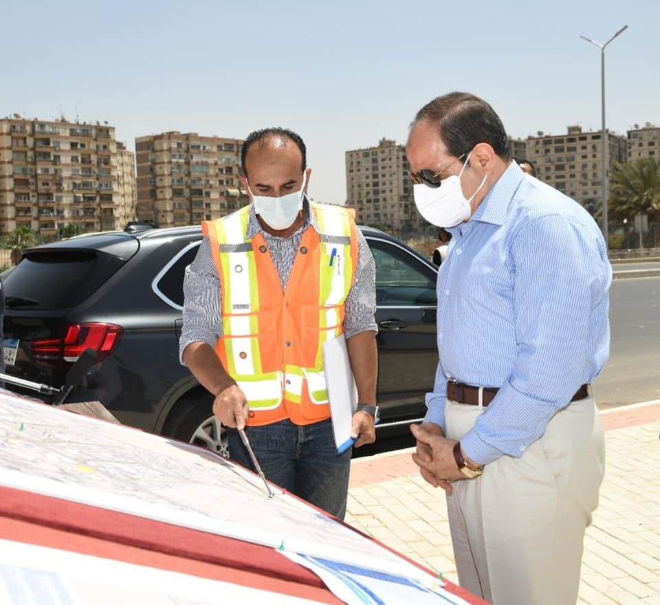 وأطلع الرئيس كذلك على توسعة و رفع كفاءة الطرق الداخلية للاحياء المحيطة بمنطقة شيراتون السكنية التي تحتوى علي عدد ١٢ شارع بإجمالي اطوال ١٤ كم وذلك لتخفيف الاعباء المروريه عن تلك المنطقة وربطها بالمحاور الرئيسية، حيث تم كذلك تطوير شبكه المرافق بتلك المنطقة باحلال و تجديد خطوط المياه بإجمالي اطوال ٣٥ كم و تنفيذ خط صرف صحي بطريق الاوتوستراد بطول ٢ كم لخدمة التجمعات السكنية المستقبليه، بالاضافة الى انشاء شبكة صرف الامطار، كما تم تنفيذ عدد ٢ عدد كوبري دوران للخلف في طريق الاوتوستراد بواقع ٣ حاره مروريه لكل كوبري.