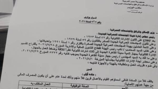 بالأسماء.. حركة تنقلات لأكثر من 50 مسؤولا بأجهزة المدن الجديدة