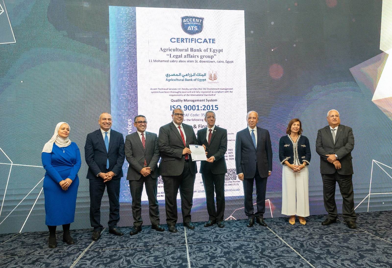وتسلمت المجموعة القانونية شهادة ISO-9001 من شركة Accent، فيما حصل قطاع المشروعات على شهادة PCI-DSS من شركة IGRC Square. كما تم تكريم عدد من الموظفين تقديراً لجهودهم في هذا النجاح.