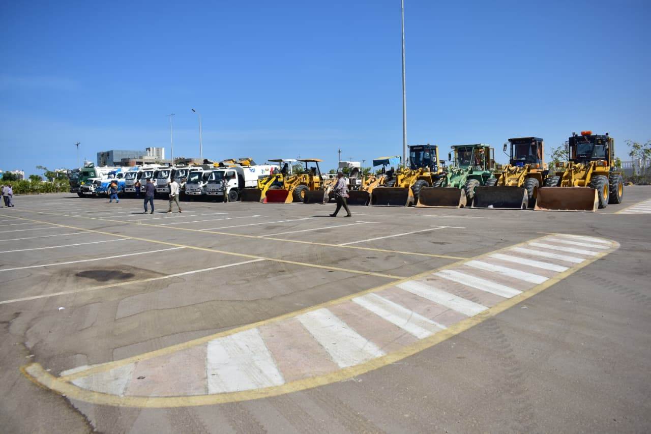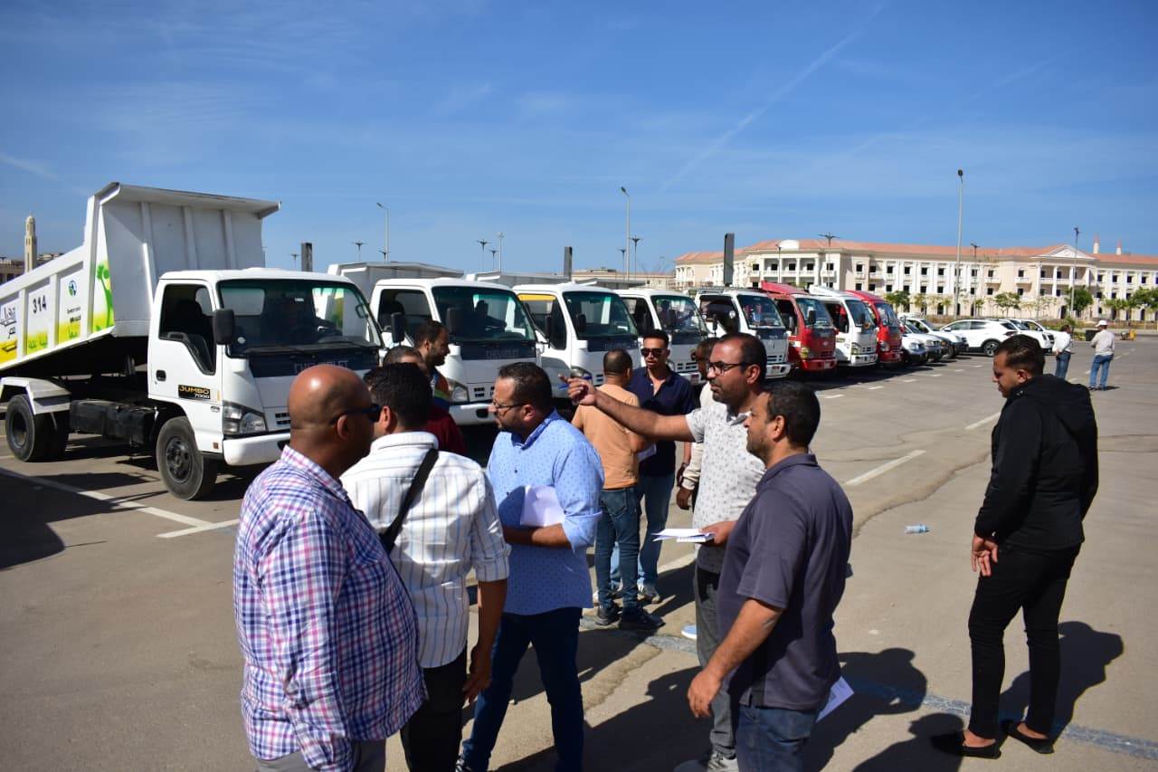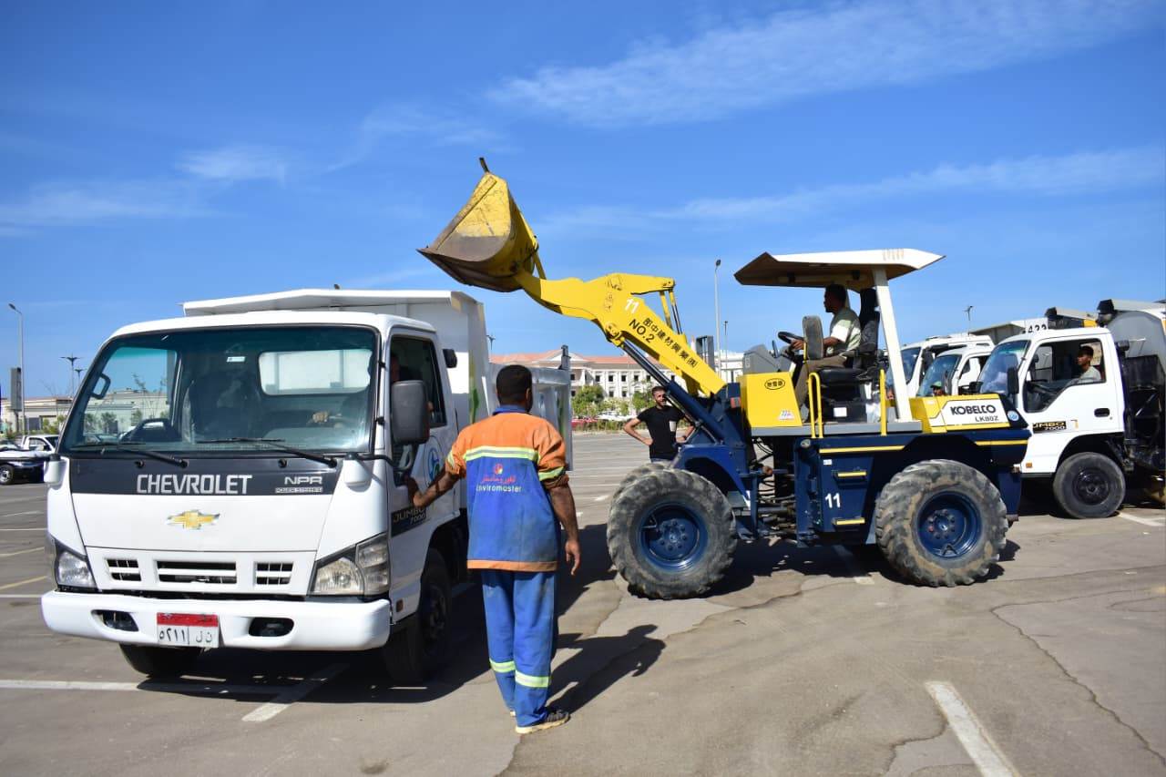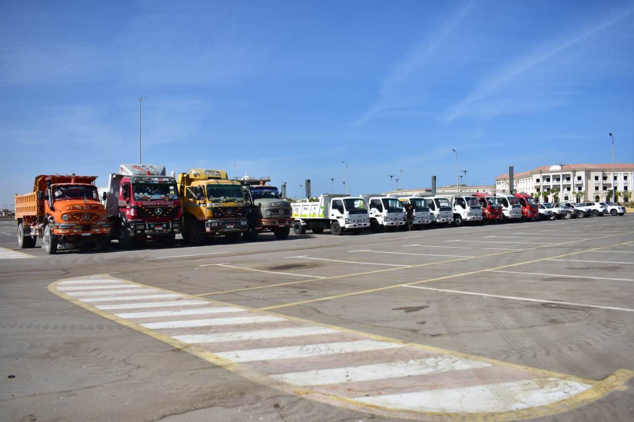 إصطفاف موسع لمعدات النظافة بمدينة العلمين الجديدة استعدادًا للعمل على الطريق الساحلي
