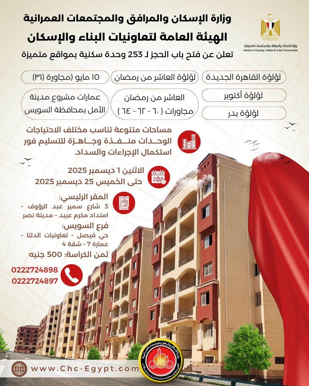 أعلنت الهيئة العامة لتعاونيات البناء والإسكان إحدى جهات وزارة الإسكان والمرافق والمجتمعات العمرانية عن فتح ب