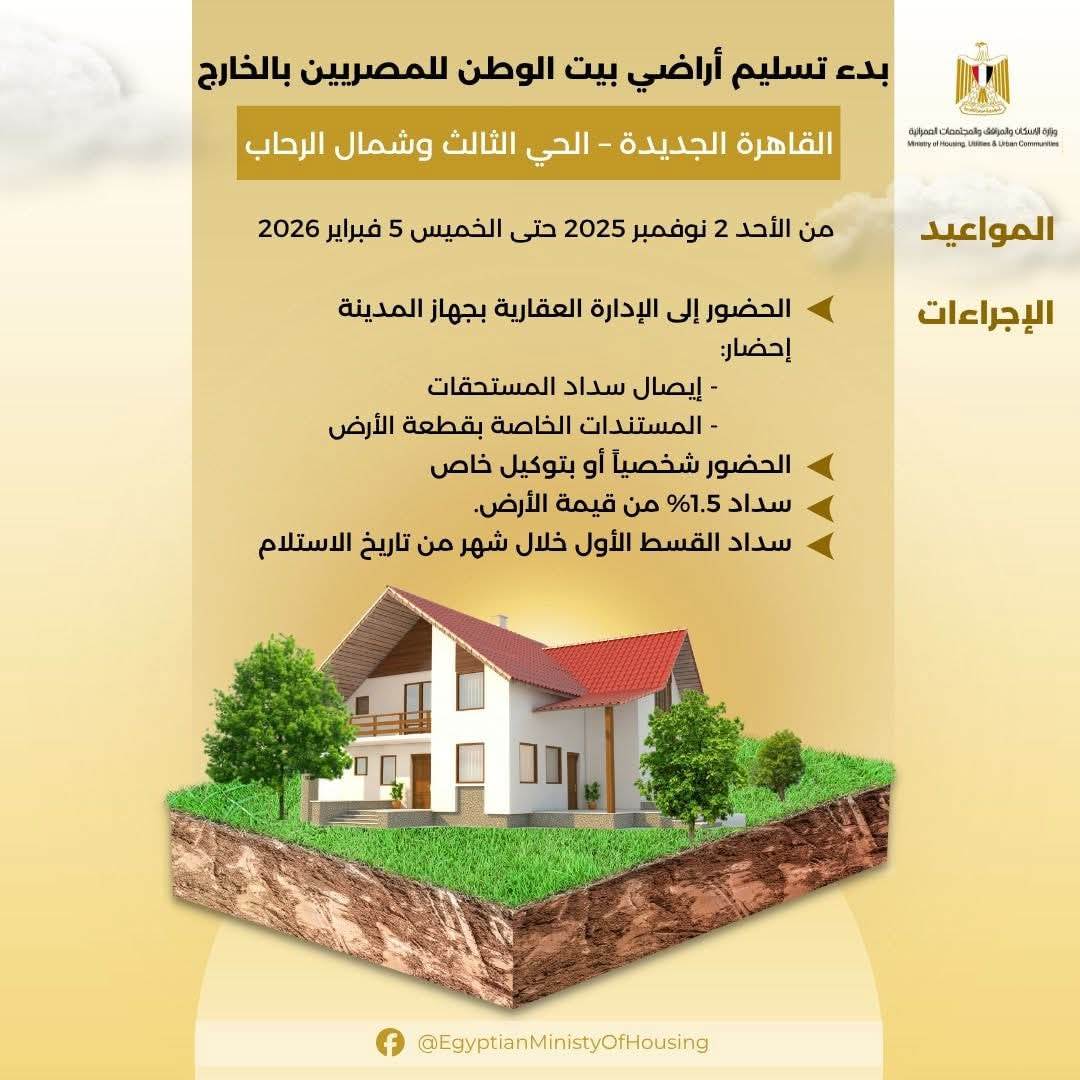 .,أراضي,الإسكان,وزير الإسكان,العمرانية,الرحاب,القاهرة,أراضي بيت الوطن,المدن الجديدة,مصر,بيت الوطن,القيادة