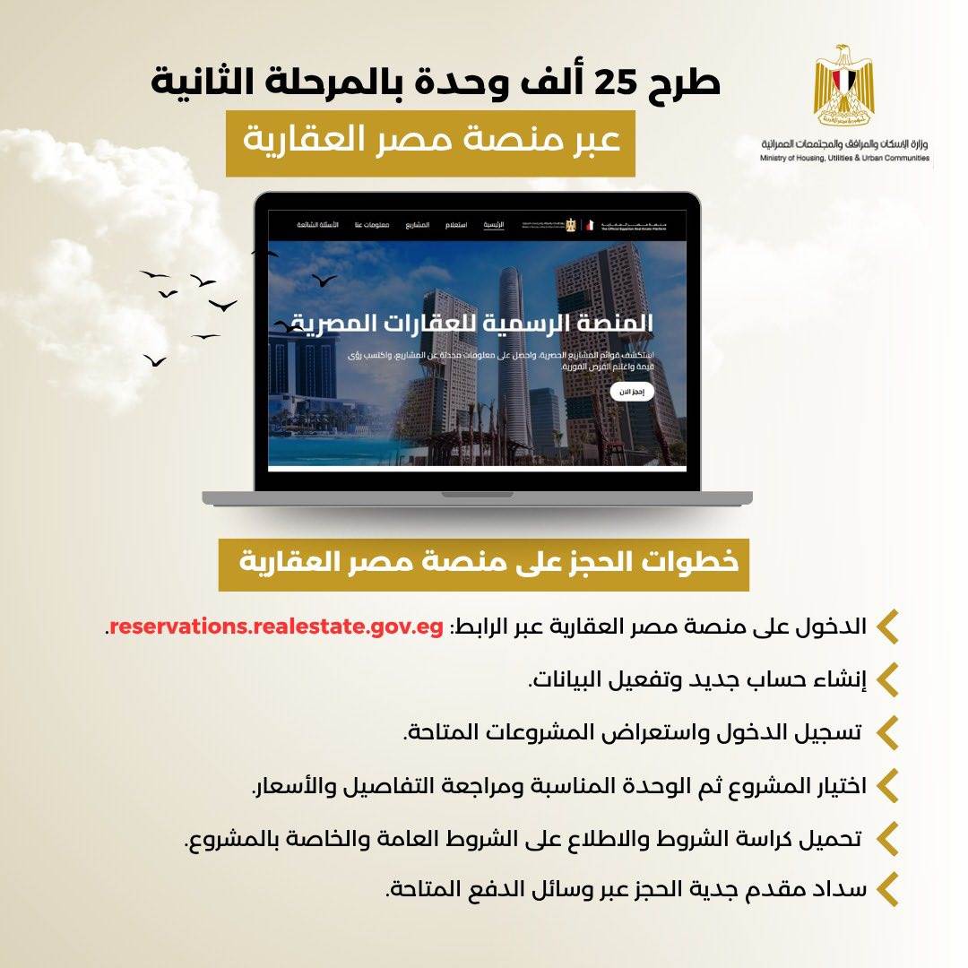بالإنفوجراف.. «الإسكان» تعلن طرح 25,012 وحدة سكنية عبر منصة «مصر العقارية»