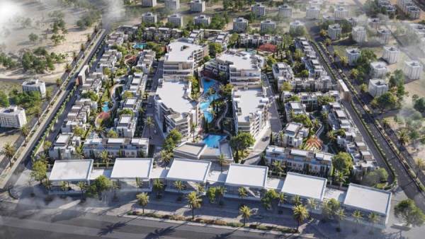 ويعتمد المخطط العام على توزيع وحدات التاون هاوس على مينى بارك لخلق مناطق سكنية هادئة، بينما تقع المباني السكنية في الداخل وسط مساحات مفتوحة وبلازا وحدائق.