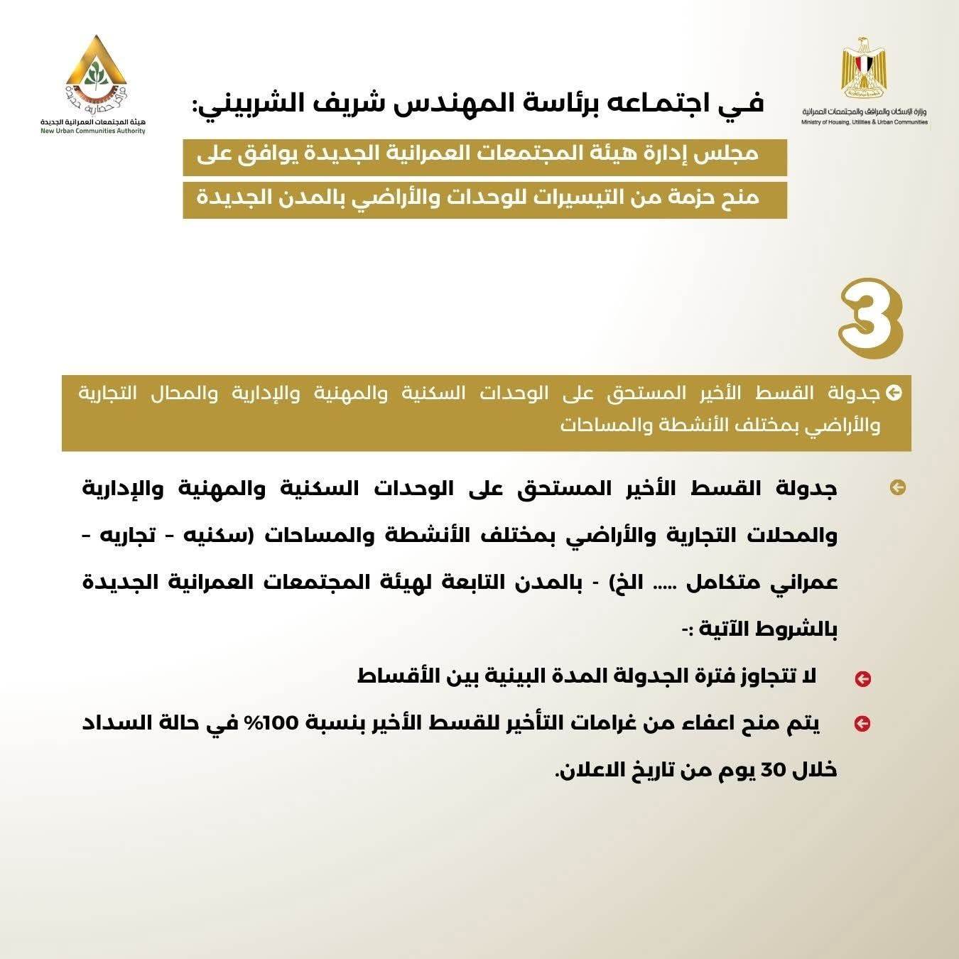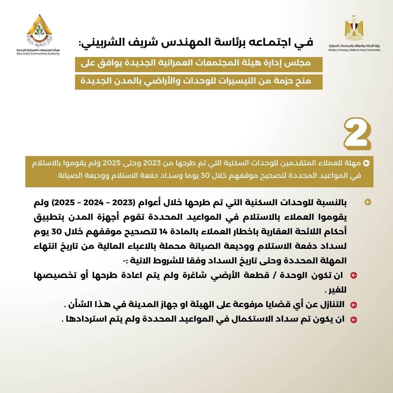 وافق مجلس إدارة هيئة المجتمعات العمرانية الجديدة في اجتماعه برئاسة المهندس شريف الشربيني وزير الإسكان والمرا