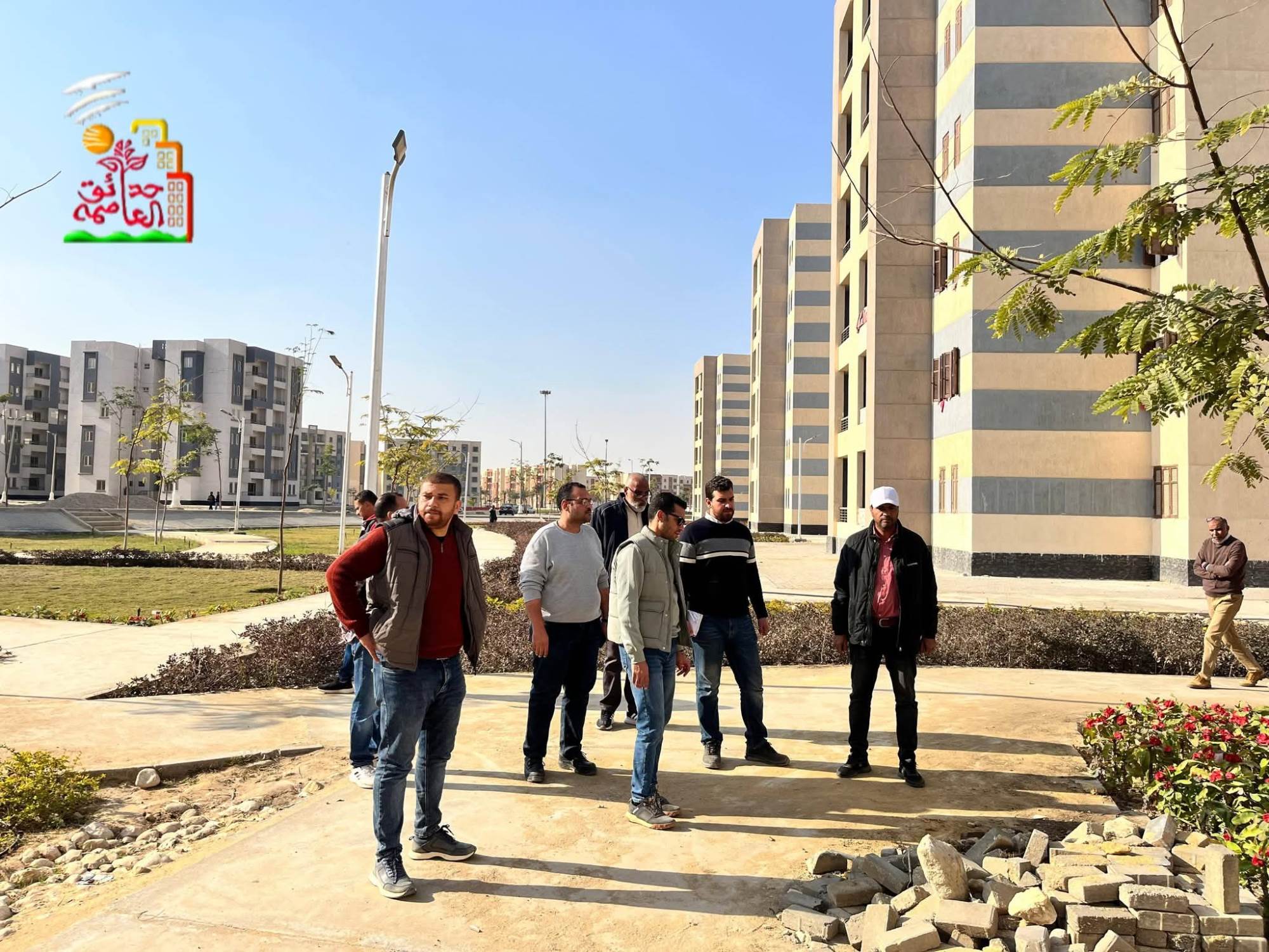 وشدد رئيس الجهاز، خلال الجولة، على ضرورة تكثيف أعمال النظافة اليومية وإزالة المخلفات والردش، ومراجعة كفاءة أعمدة وشبكات الإنارة العامة، إلى جانب الاهتمام بزراعة الأشجار وصيانة المسطحات الخضراء بما يعزز الطابع الجمالي والحضاري للمنطقة، موجّهًا بالمتابعة الدورية لنظافة الشوارع الداخلية واستكمال أعمال الإنترلوك.