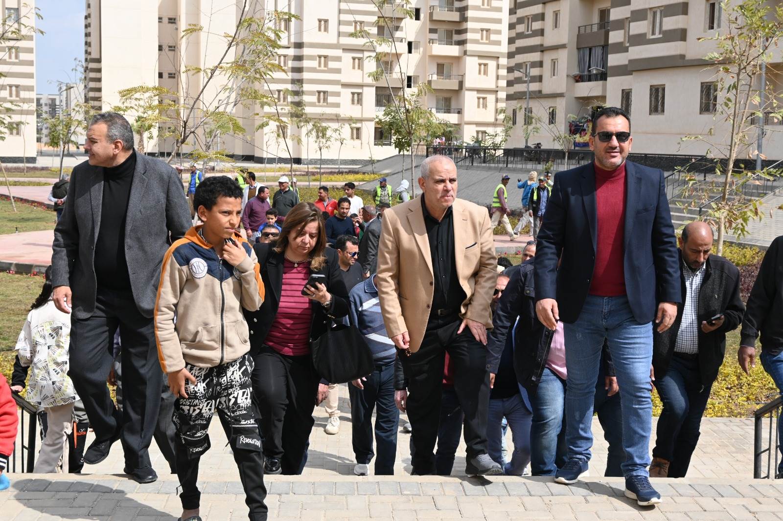 واستهلت الجولة بتفقد مشروع الـ125 عمارة بشرق الأندلس – محور منخفضي الدخل – ضمن المبادرة الرئاسية سكن لكل المصريين، والذي يضم نحو 3000 وحدة سكنية كاملة المرافق بمساحة 90 مترًا مربعًا للوحدة، بنسبة تنفيذ بلغت 100% شاملة أعمال المرافق وتنسيق الموقع العام، تمهيدًا لبدء إجراءات التسليم.