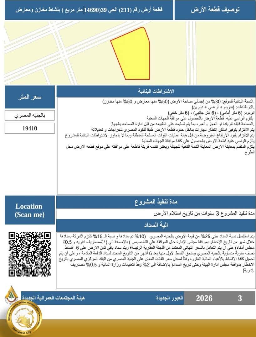 أعلن جهاز تنمية مدينة العبور الجديدة برئاسة المهندس محمود مراد عن إطلاق مجموعة متكاملة من الفرص الاستثمارية ا